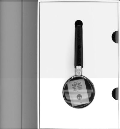 La plus petite BD au monde restera sans doute à jamais celle gravée au laser sur un cheveu humain par l’Allemande Claudia Puhlfürst en 2014, mais le dernier ouvrage de Marc-Antoine Mathieu n’en constitue pas moins un record, s’agissant de l’édition française. Plus petit que la collection « Patte de mouche » de l’Association (10,5 x 15 cm), à laquelle il a d’ailleurs livré quelque six titres entre 1995 et 2022, plus petit même que la collection « BDàP » (BD à poster) des éditions Roquemoute (7,5 x 10, 5 cm), à laquelle ont notamment contribué Fabcaro, Téhem, Bouzard et Baudoin, voici L’infiniment moyen et plus si affinités dans les limites finies d’une édition minimaliste (qui, au passage, bat peut-être aussi le record du titre le plus long), un mini-livre cartonné de 88 pages, au format 3 x 3,8 cm, commercialisé avec une loupe, sous coffret.