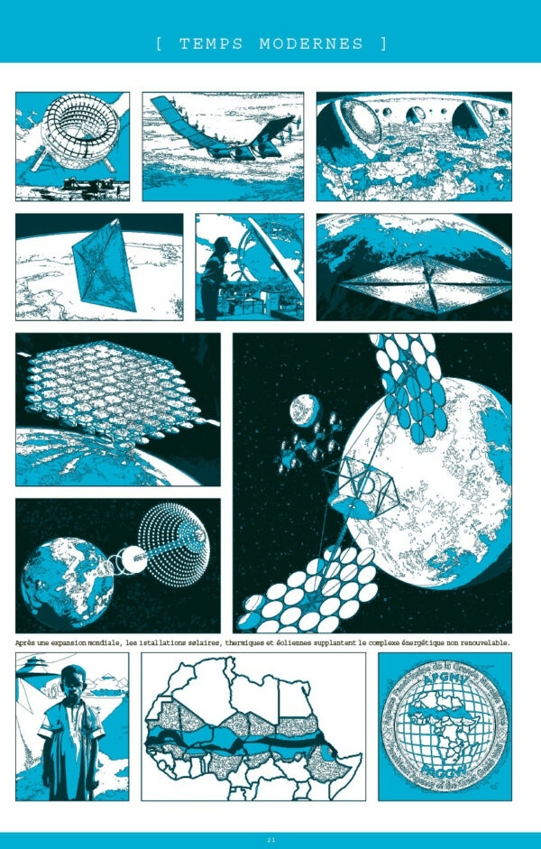 En s’appuyant sur les théories et les connaissances actuelles, Jens Harder a donc entièrement scénarisé un « futur possible » – essentiellement post-humaniste et qui, c’est le moins que l’on puisse dire, ne fait pas rêver – dont on peut suivre les grandes lignes sans pour autant en comprendre tous les méandres. Rien qu’en cela, il va bien au-delà des œuvres d’anticipation ou des récits dystopiques habituels, qui presque tous imaginent un état de la civilisation, dans telle partie du monde, à tel moment donné. Au contraire, Gamma… visions tire tous les fils de notre avenir (climatique, biologique, technologique, politique…), les entrelace et les suit sur plusieurs millénaires sans laisser aucun trou dans la trame des événements. La prouesse est stupéfiante.