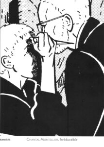 Je suis un peu surpris, je l’admets, en feuilletant l’index, de constater que mon nom en est absent, ce qui signifie qu’il n’est mentionné dans aucune des études qui reviennent en détail sur les faits d’armes de Chantal Montellier. Puis-je me permettre, là encore, quelques rappels ? J’étais signataire du manifeste « Navrant » publié dans Le Monde le 28 janvier 1985, en soutien de Montellier et ses consœurs ; comme rédacteur en chef des Cahiers de la bande dessinée, j’avais publié un dossier sur elle dans le n° 65 (sept.-oct. 1985), riche de huit contributions, ainsi que, dans d’autres numéros, des comptes-rendus de plusieurs de ses livres ; en 1994, j’ai collaboré au premier ouvrage critique qui lui a été consacré, I am a camera : Chantal Montellier auteur de bande dessinée, en accompagnement d’une exposition à l’espace Delphine Seyrig ; en octobre 1995, j’ai prononcé une conférence sur son travail à Washington, à l’université de Georgetown ; j’ai été membre du jury du prix Artémisia fondé par Chantal pendant plusieurs années ; comme éditeur, je lui ai d’abord commandé un récit de 19 pages (« Sa majesté la mouche ») pour l’ouvrage collectif Noire est la Terre (Autrement, 1996) puis, à l’An 2 et chez Actes Sud, j’ai procédé à une réédition d’Odile et les crocodiles avant d’accueillir deux nouvelles créations : L’Insoumise (avec /Marie-José Jaubert, 2013) et La Reconstitution (2015). C’est, il me semble, ce qui peut s’appeler un compagnonnage au long cours – lequel se poursuit avec le texte que j’ai livré pour le volume dont je parle ici ; sans compter que j’ai récemment bataillé avec mes collègues cocurateurs pour qu’elle ne soit pas absente de l’exposition « Bande dessinée, 1964-2024 » au Centre Pompidou.